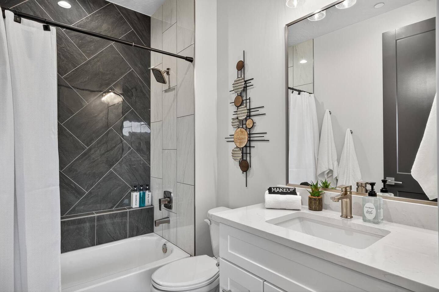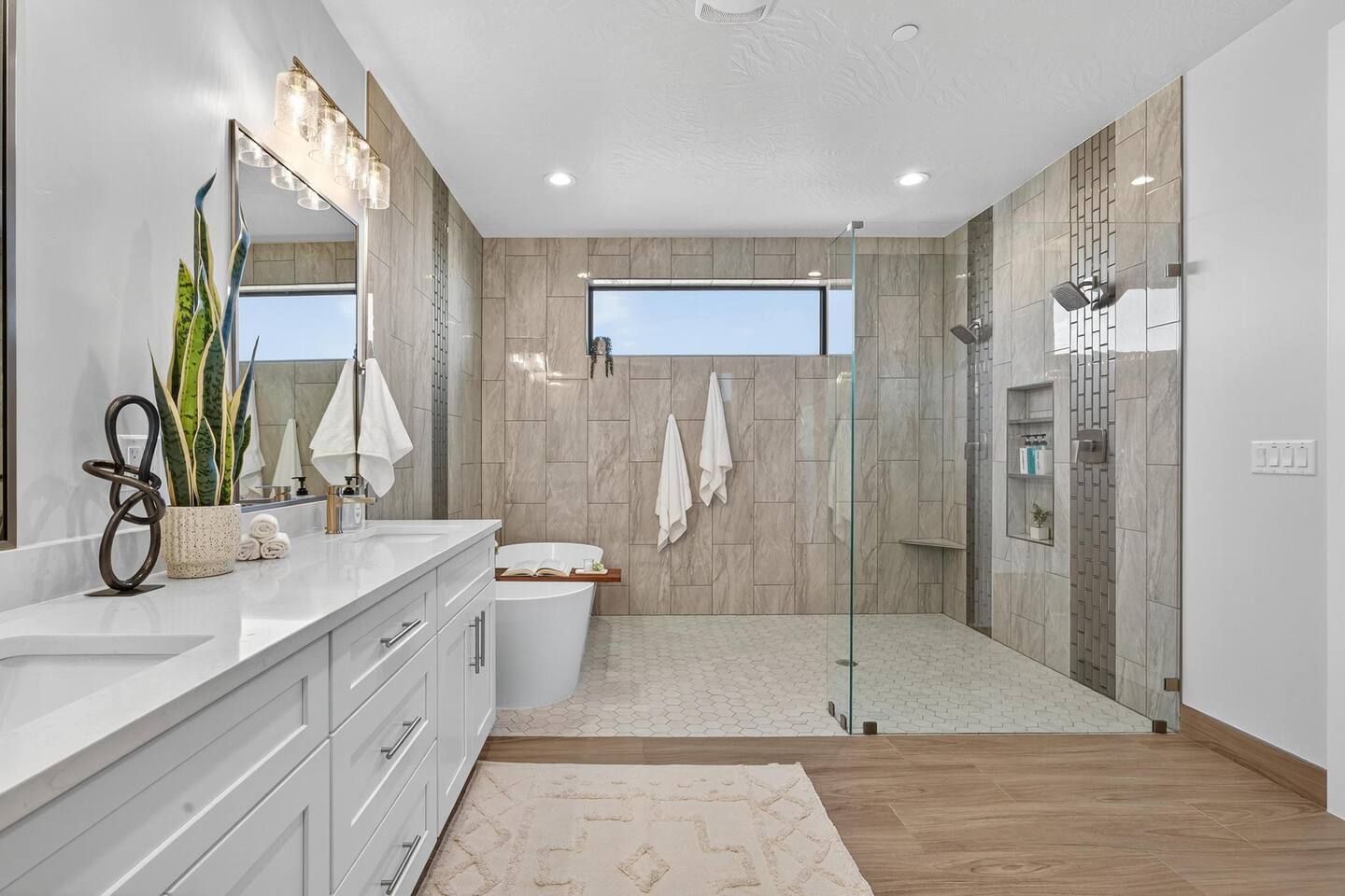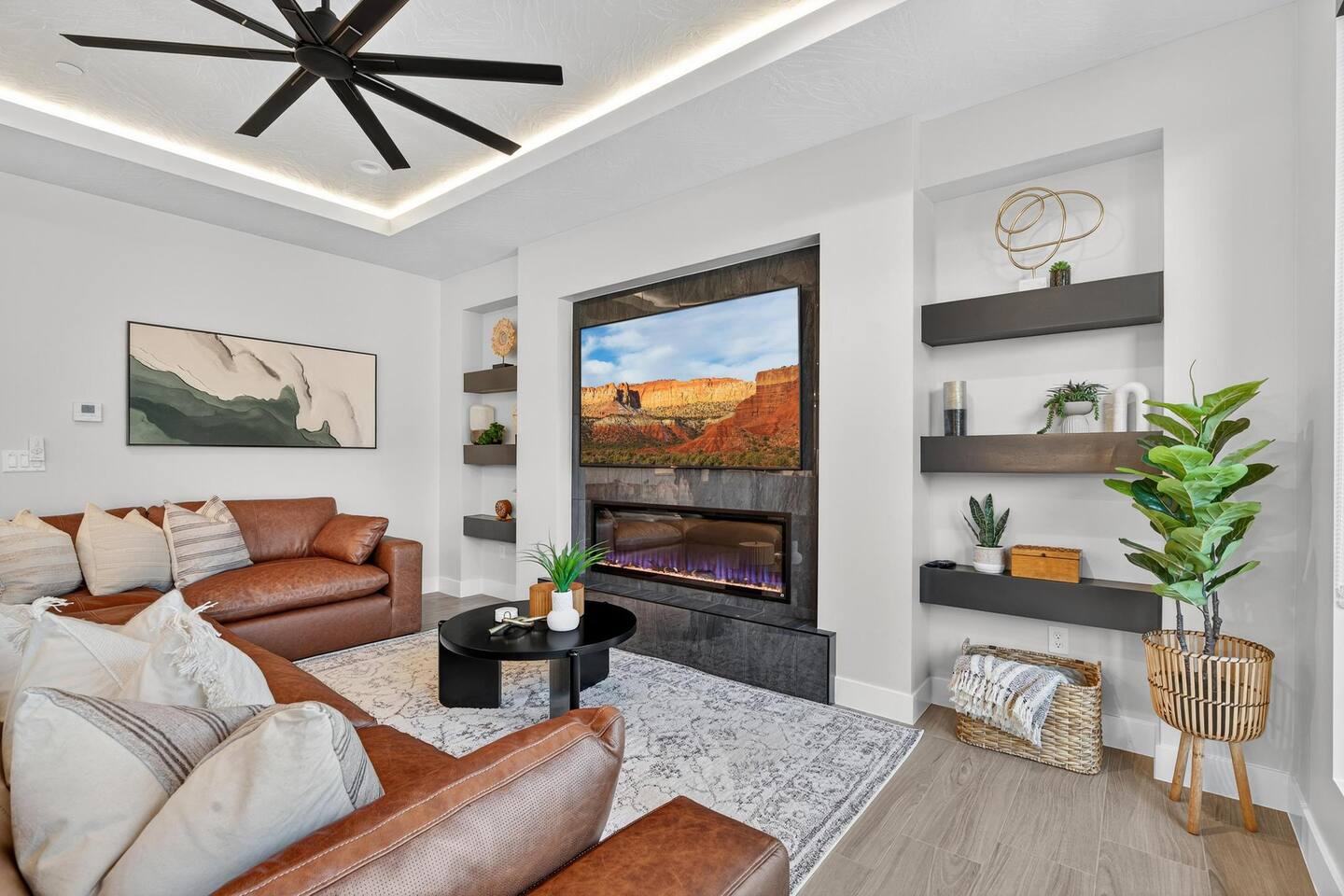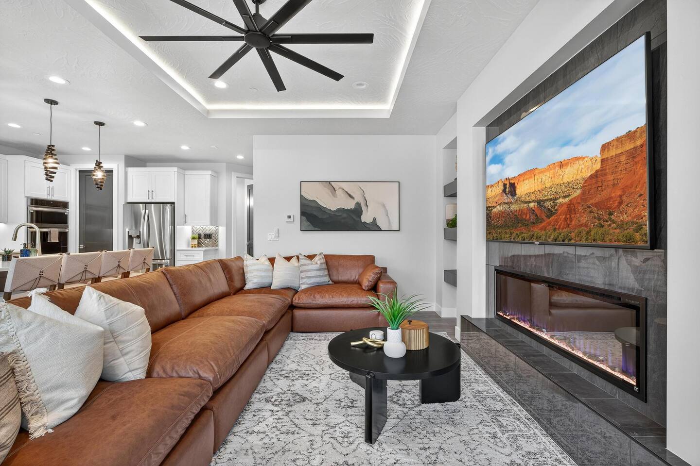Main Floor – Open, Bright, & Functional The open layout creates a perfect space to cook, dine, and relax together. Garage Parking – Room for 2 cars or toys like ATVs. Driveway Parking – Space for extra vehicles. Fully Stocked Kitchen – High end appliances, cookware, and lots of counter space. Living Room – Plush seating, smart TV, and fireplace for cozy nights in. Dining Area – Large table for meals or games. Backyard Hangout – Soak in the hot tub, play mini golf, relax by the fire table. 🏜 Upstairs – Private & Peaceful ♔ Master Suite: Spacious & Serene King bed, smart TV, and a private balcony. The en suite bath has a walk-in shower with dual shower heads, soaking tub, and walk-in closet. ♕ Second Suite: Cozy & Comfortable King bed with attached bathroom (shower/tub combo)—a perfect retreat after a day out exploring. ♖ Bunk Room: Room for Everyone Four queen beds make this a fun and roomy spot for kids or groups. Built for both sleep and play. ♘ Loft Lounge A second hangout space with seating and a smart TV—great for movies or quiet time. 🌄 Adventure Ready Location On-site ATV Rentals with Club Rec Sand Dunes & Golf - 5 minutes Sand Hollow State Park – 5 minutes Zion National Park – 30–45 minutes Snow Canyon – 45 minutes Bryce Canyon - 3 hrs Downtown St. George – 30 minutes Groceries & essentials – 10 minutes away (Times may vary depending on traffic.) 🌊 Resort Waterpark & Clubhouse Access – Included! Your stay includes 12 free daily passes to the resort’s private waterpark—just steps from your front door. (Closed Tuesdays) Features include: 🌪️ Action River – Float or race around the current. 🛝 Waterslides for All Ages – Pure splashy fun. 🌊 Double Surf Air Machine – Try your balance on the wave! ⛳ Golf Simulators – Perfect your swing indoors anytime. (additional charge) 🏊 Huge Main Pool – Swim, splash, or chill. 🍹 Adults-Only Pool – A peaceful spot to relax kid-free. Need more than 12 passes? Guests can buy additional passes at the beach house for $35/person/day.