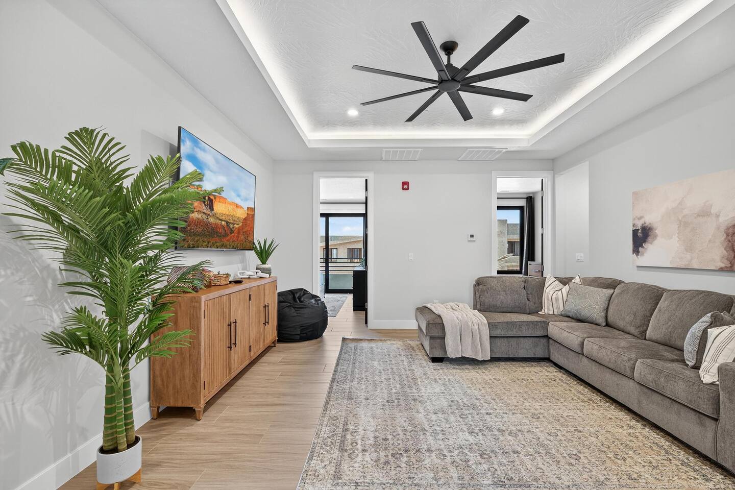 Welcome to Paradise Plunge, your sunny escape in southern Utah! Relax & Play at Pecan Valley Resort 3 Bed | 4 Bath | Sleeps 12 | Private Hot Tub | 12 Daily Waterpark Passes Included Whether you're soaking in the private hot tub, enjoying mini golf in the backyard, or making memories at the incredible resort waterpark just steps away, this home is the perfect blend of comfort, adventure, and family fun.