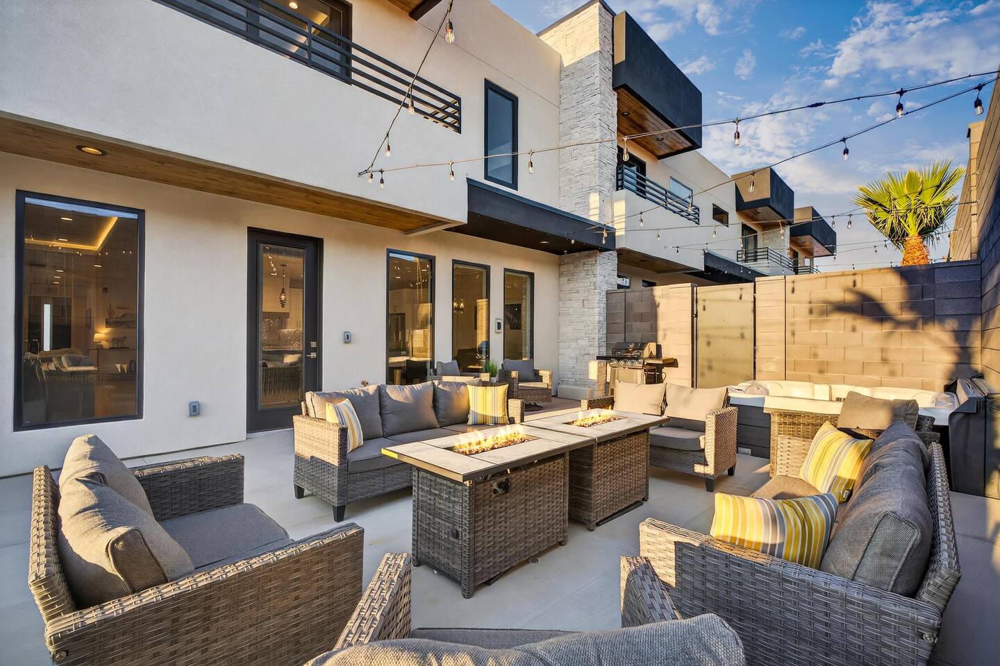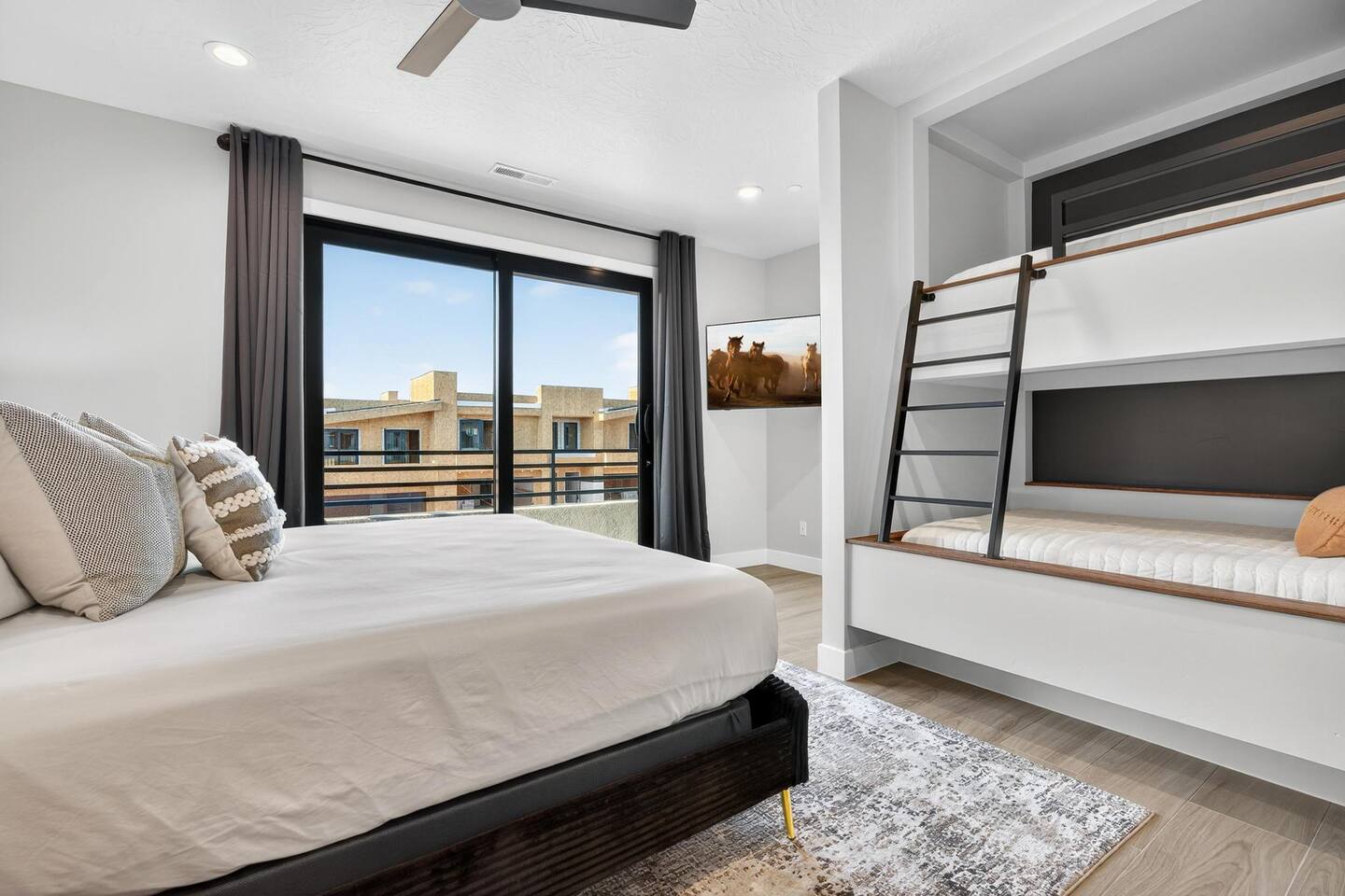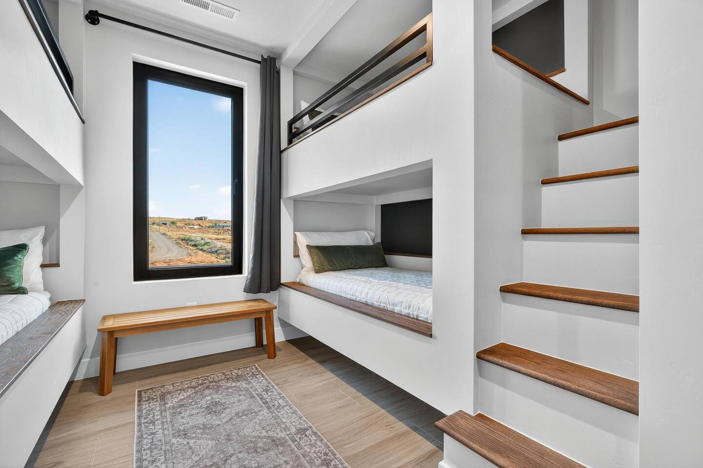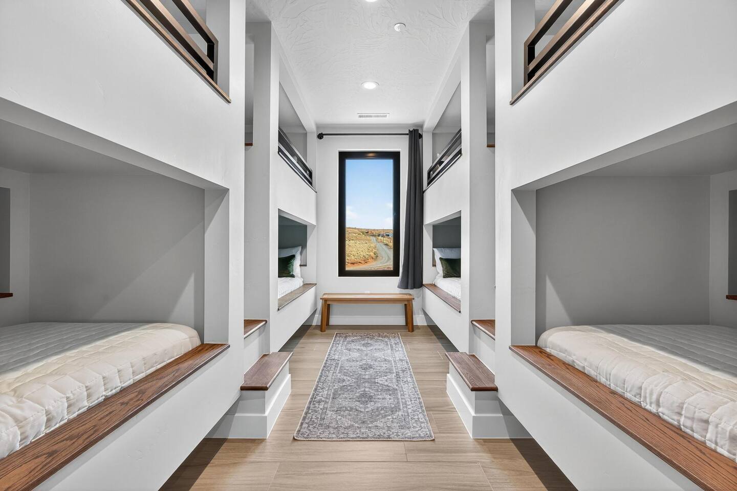 Bedroom Configuration Main Level Bedroom 1 – King Suite Spacious and serene, this suite features a king-size bed, private en suite bathroom, and easy access to the open-concept living room, dining area, and fully equipped kitchen. Half Bathroom Conveniently located off the main living area—perfect for guests to use without entering a bedroom. Exterior Amenities – Main Level Private Hot Tub – Relax and soak beneath the stars in complete privacy. Outdoor seating with firepit. BBQ Grill and Outdoor Seating – Enjoy meals or morning coffee outdoors. Misting System – Stay cool and comfortable on warm days with the outdoor misting system. Second Level Bedroom 2 – King Suite A cozy retreat with a king-size bed, private en suite bathroom, and access to a private patio—ideal for morning coffee or evening relaxation. Bedroom 3 – King Suite Beautifully designed with a king-size bed, private en suite bathroom, and its own private patio for added privacy and comfort. Bedroom 4 – Family Suite Perfect for families, this room includes one king bed and a built-in twin-over-full bunk bed, with a dedicated full bathroom. Bedroom 5 – Bunk Room Designed for fun and flexibility, this room includes four twin-over-twin bunk beds (eight twin beds total), ideal for kids or larger groups. Additional Features Game Room Enjoy hours of entertainment with loved ones. Laundry Room Equipped with a washer and dryer for your convenience—ideal for longer stays. 🌄 Adventure Ready Location On-site ATV Rentals with Club Rec Sand Dunes & Golf - 5 minutes Sand Hollow State Park – 5 minutes Zion National Park – 30–45 minutes Snow Canyon – 45 minutes Bryce Canyon - 3 hrs Downtown St. George – 30 minutes Groceries & essentials – 10 minutes away (Times may vary depending on traffic.) 🌊 Resort Waterpark & Clubhouse Access – Included! Closed Tuesdays Your stay includes 12 free daily passes to the resort’s private waterpark—just steps from your front door. (Closed Tuesdays) Features include: 🌪️ Action River – Float or race around the current. 🛝 Waterslides for All Ages – Pure splashy fun. 🌊 Double Surf Air Machine – Try your balance on the wave! ⛳ Golf Simulators – Perfect your swing indoors anytime. (additional charge of $35 per hour per group) 🏊 Huge Main Pool – Swim, splash, or chill. 🍹 Adults-Only Pool – A peaceful spot to relax kid-free. Need more than 12 passes? Guests can buy additional passes at the Beach House for $35/person/day.