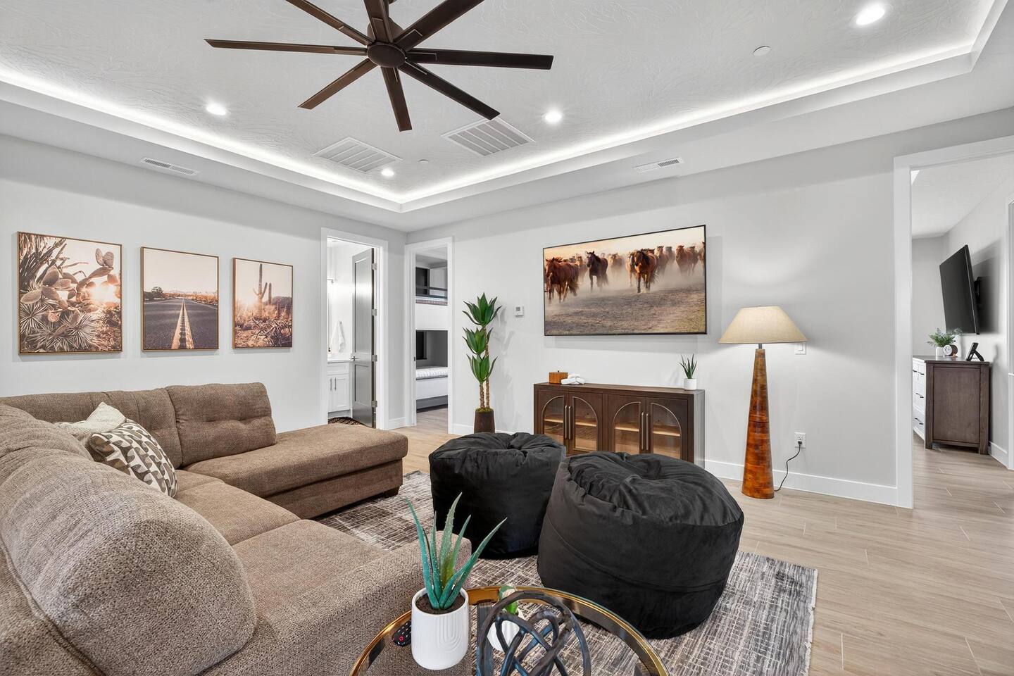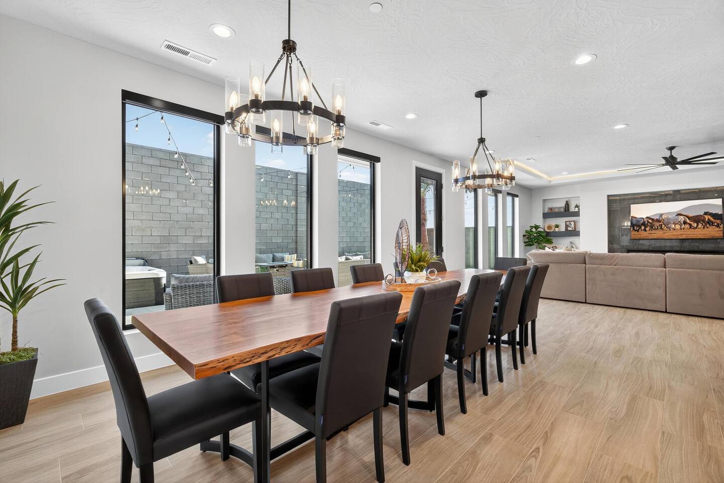 Experience Serava at Pecan Valley—a refined 5-bedroom, 6-bath retreat for 19 guests. Featuring a private spa, game room, and resort waterpark access, this desert haven blends upscale comfort with stunning Southern Utah scenery.