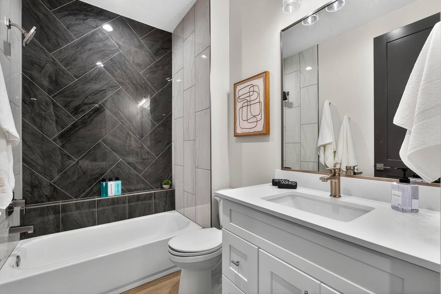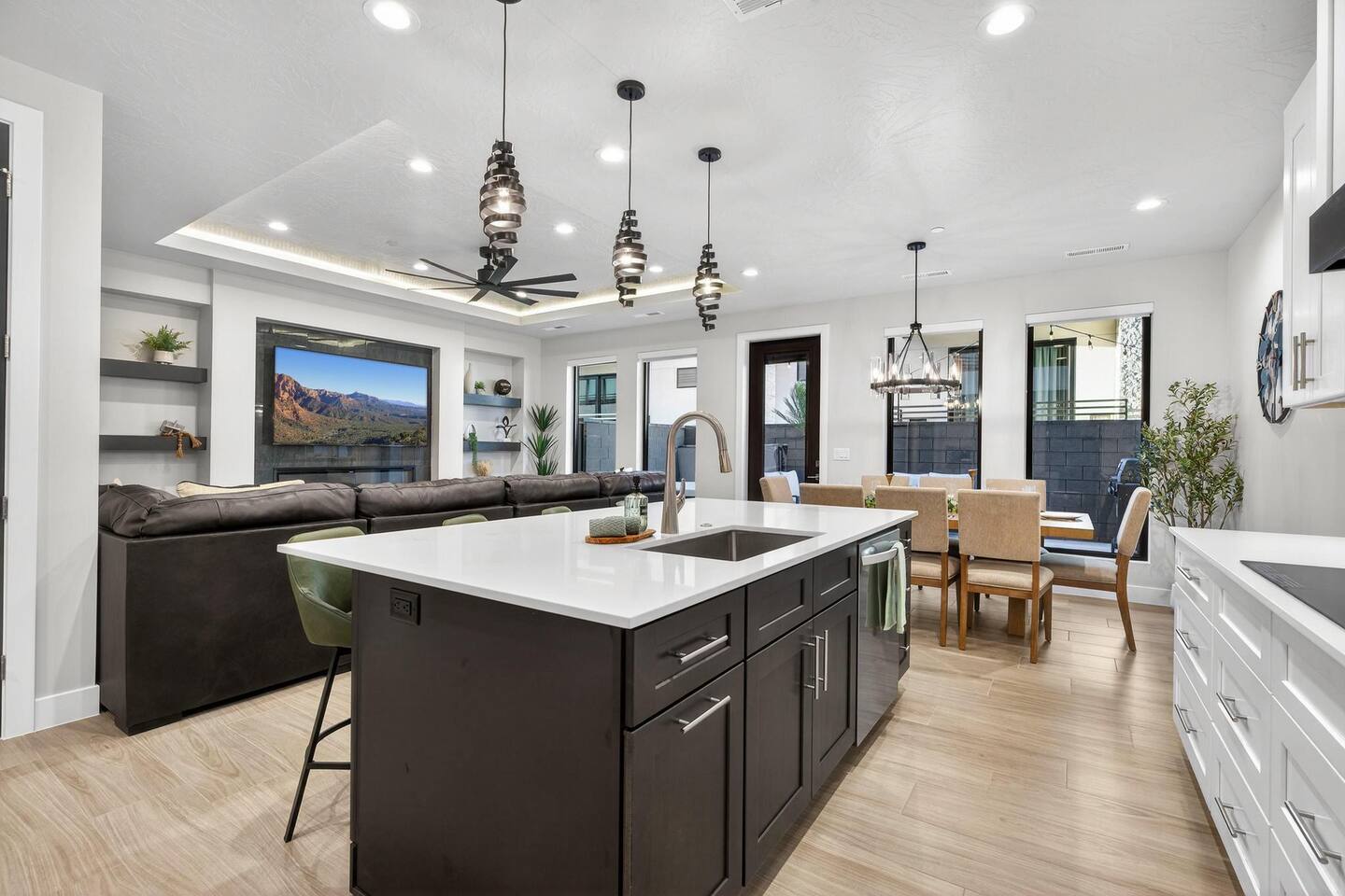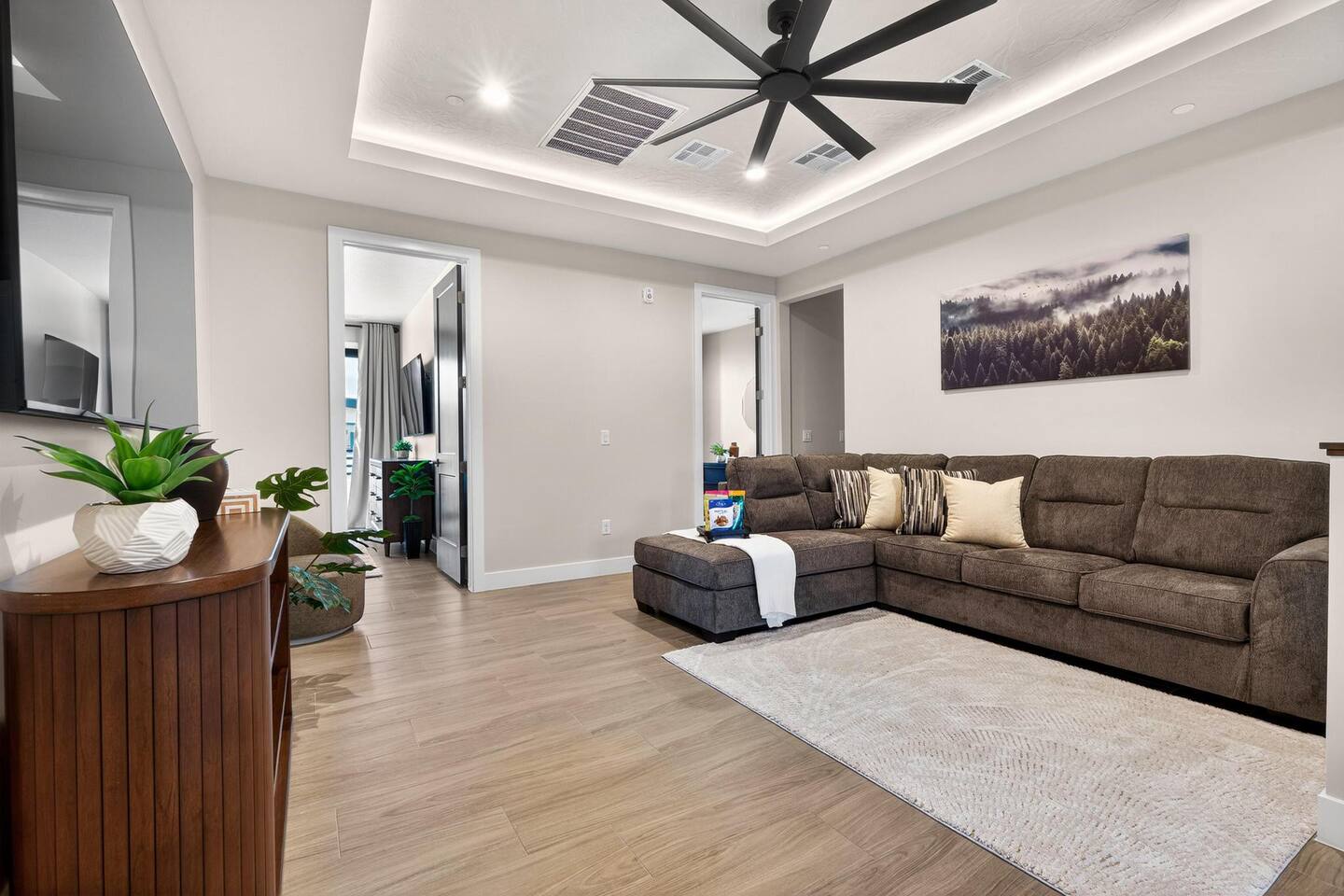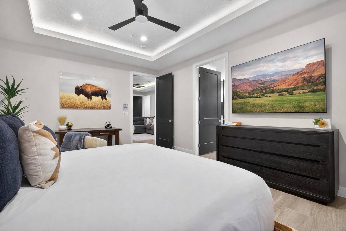 Unwind in your private hot tub or gather around the backyard fire pit for an unforgettable evening under the stars. With comfortable outdoor seating you'll have everything you need for relaxing evenings. Pecan Valley Resort Amenities – IMPORTANT NOTICE Please note that the Pecan Valley Resort waterpark and several amenities are currently limited and are expected to be fully available by the end of May. The resort itself remains open, and the following amenities are currently available: • Figure-8 hot tub • Surf machine (open daily from 12:00 PM – 3:00 PM) • Golf simulators ($20/hour per simulator) • On-site restaurant and bar (open Thursday–Sunday) Resort amenities, hours, and availability are managed directly by Pecan Valley Resort and may change based on weather, maintenance, or operational needs. By booking, guests acknowledge that waterpark access and certain amenities may be unavailable during this time. Refunds will not be issued based on amenity availability. Room Breakdown: Main Floor: Living Room, Kitchen, & Dining Area: An inviting open-concept space featuring a fully equipped kitchen, perfect for family meals. The expansive living area and dining space create the ideal setting for gatherings. Half Bath: Conveniently located for easy access on the main level. Upstairs: King Suite 1: A king-sized bedroom and a spacious en suite bathroom complete with a stand alone bath tub and walk-in shower. King Suite 2: Another luxurious king suite with a comfortable king-sized bed and its own en suite bathroom. Bunk Room: A perfect space with 4 queen-sized beds, accommodating up to 8 guests. Perfect for groups. This room also has a dedicated nearby bathroom. Loft: A cozy space for relaxation or play. Outdoor Amenities: Private Hot Tub & Fire Pit: Soak away your cares or share stories by the fire as you enjoy s’mores and starlit skies. Backyard Seating: Outdoor furniture with a cozy fire pit. 🌄 Adventure Ready Location On-site ATV Rentals with Club Rec. Sand Dunes & Golf - 5 minutes. Sand Hollow State Park – 5 minutes. Zion National Park – 30–45 minutes. Snow Canyon – 45 minutes. Bryce Canyon - 3 hrs. Downtown St. George – 30 minutes. Groceries & essentials – 10 minutes away (Times may vary depending on traffic.) 🌊 Resort Access Included! Your stay includes 12 free daily passes Features include: 🌪️ Action River – Float or race around the current. 🛝 Waterslides for All Ages – Pure splashy fun. 🌊 Double Surf Air Machine – Try your balance on the wave! ⛳ Golf Simulators – Perfect your swing indoors anytime. 🏊 Huge Main Pool – Swim, splash, or chill. 🍹 Adults-Only Pool – A peaceful spot to relax kid-free. Need more than 12 passes? Guests can buy additional passes at the beach house for $35/person/day.