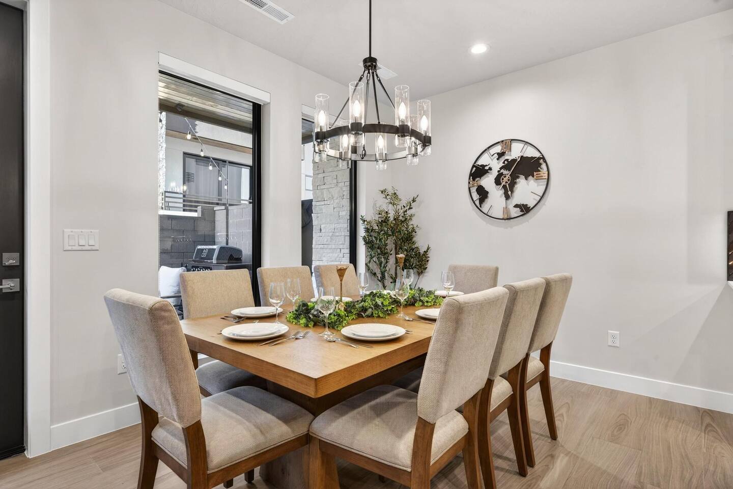 House Rules: Maximum Occupancy: This home accommodates up to 12 people. Please adhere to this limit for the comfort and safety of all guests. Do not exceed the maximum occupancy. No Smoking Policy: Smoking of any kind (including cigarettes, cigars, vapes, and e-cigarettes) is strictly prohibited inside the home. A $500 fine will be charged for any evidence of smoking, along with any additional costs for cleaning or damage. No Pets unless they are preauthorized and added to your reservation. Spa Usage: Enjoy the spa, but exercise caution and responsibility. Children must be supervised at all times. USE AT YOUR OWN RISK. Safety Measures: For your safety, please do not climb on or over any railings or barriers within the property. Be mindful of any warning signs and follow instructions provided. Quiet Hours: Please be respectful of other guests and neighbors, especially during quiet hours (typically between 10 PM and 7 AM). Keep noise levels to a minimum, both inside and outside the property. Responsible Conduct: Treat the property and its amenities with care. Any damages or excessive mess caused by guests may result in additional charges. Please do not remove any items from the home. Rinse Dishes and Start the Dishwasher: Before check-out, please rinse dishes and start the dishwasher. This helps us maintain a clean and organized kitchen for future guests. Garbage Disposal: Take all garbage out to the dumpsters located on the east end of the building. Properly dispose of trash to keep the property clean and avoid attracting pests. CITY OF HURRICANE RULES Guests or occupants of short-term rental shall not: 1. Create noises that by reason of time, nature, intensity or duration are out of character with noises customarily heard in the surrounding residential neighborhood. 2. Disturb the peace of surrounding residential property residents by engaging in shouting, fighting, playing of loud music, racing of cars or recreational vehicles on streets, engaging in outside recreational activities after ten o'clock P.M. or other similar activities. 3. Interfere with the privacy of surrounding residents or trespass onto surrounding residential properties. 4. Allow pets or animals to create noise, roam the streets, trespass onto neighboring properties, or create a mess that is nit cleaned up by the owner or custodian of the pet or animal. 5. Engage in any disorderly or illegal conduct, including illegal consumption of drugs or alcohol. We hope you have a wonderful and enjoyable experience at our home. Thank you for respecting these house rules, as they ensure a pleasant stay for all guests.