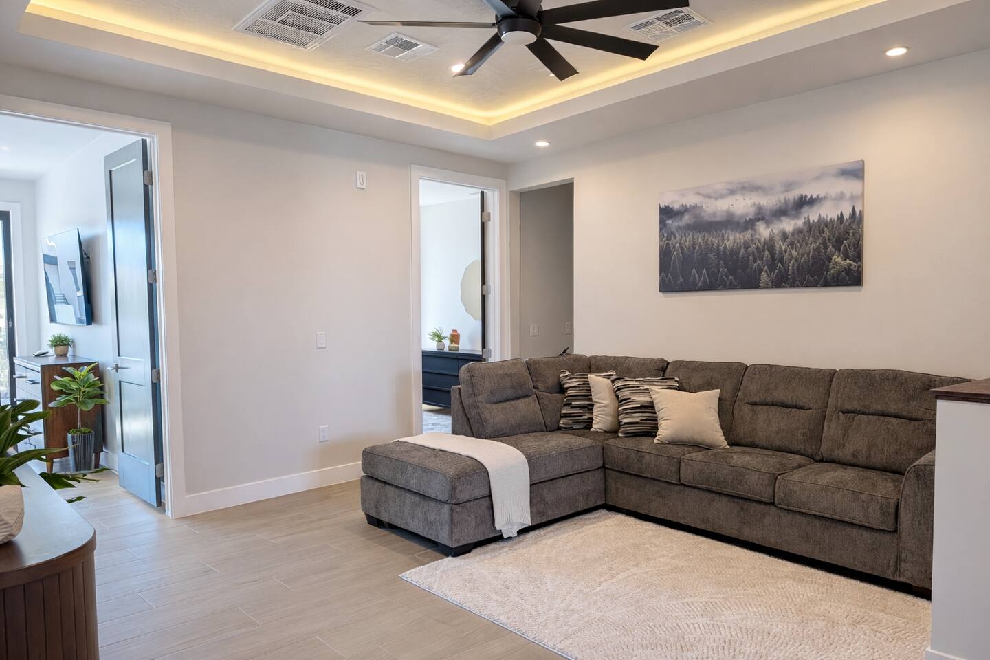 Welcome to The Desert Fairway at Pecan Valley Resort Your sunny escape in southern Utah! 3 Bed | 4 Bath | Sleeps 12 | Private Hot Tub | 12 Daily Waterpark Passes Included Whether you're soaking in the private hot tub, relaxing after a day on the nearby fairways, or making memories at the incredible resort waterpark just steps away, Desert Fairway offers the perfect blend of comfort, adventure, and family fun.