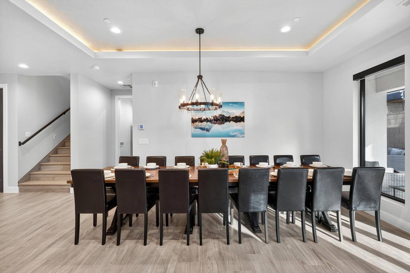 What You’ll Love 🌊 Private pool & spa combo 🛏️ 7 spacious bedrooms & 9 bathrooms — plenty of privacy for everyone 👩🍳 Chef’s kitchen with high-end appliances and generous prep space 🎮 Game room 📍 Prime location near Zion National Park, Sand Hollow, & Bryce Canyon Perfect for family reunions, multi-family vacations, retreats, or team getaways. Whether you’re exploring Southern Utah or lounging poolside, this home delivers the ultimate resort-style escape. Bedroom Configuration Main Level Bedroom 1 – King Suite A peaceful retreat featuring a king bed, private en suite bathroom, and direct access to the open living area and kitchen. Bedroom 2 – King Suite Elegant suite with a king bed, en suite bathroom. Half Bathroom Conveniently located off the main living area for guests. Laundry Room (Main Level) Full washer & dryer for your convenience. Second Level Bedroom 3 – Family Suite The ultimate family room with 3 queen beds and 5 twin built-in bunks in a stylish, high-end design—ideal for kids or larger families. Includes a private full bathroom. Bedroom 4 – King Suite Spacious suite with king bed, en suite bathroom, and private patio access. Bedroom 5 – King Suite Beautifully designed king suite with private bath and patio. Bedroom 6 – King Suite Modern and inviting, with king bed, full en suite, and ample natural light. Bedroom 7 – King Suite Tranquil retreat featuring king bed, private bath, and plenty of space to unwind. Laundry Room (Second Level) Washer and dryer for easy access during longer stays. Game Room & Entertainment Gather together for fun-filled nights in the fully equipped game room, featuring: ALL IMAGES IN THIS LISTING ARE STOCK PHOTOS AND WILL BE UPDATED ASAP. Layout and home amenities are the same. Games in the game room will vary. Outdoor Amenities Private Pool & Spa – Heated and ready for use year-round Firepit & Outdoor Seating – Perfect for stargazing or late-night conversations BBQ Grill – Enjoy outdoor meals with family and friends Misting System – Keeps you cool and comfortable on warm Utah days Adventure-Ready Location On-site ATV rentals through Club Rec Sand Dunes & Golf: 5 minutes Sand Hollow State Park: 5 minutes Zion National Park: 30–45 minutes Snow Canyon: 45 minutes Bryce Canyon: 3 hours Downtown St. George: 30 minutes Groceries & essentials: 10 minutes (Times vary depending on traffic.) 🌊 Resort Waterpark & Clubhouse Access – Included! Limited access in colder months. Can request surf machine at resort entrance. Your stay includes 23 free daily passes to the resort’s private waterpark — just steps from your door! Waterpark Highlights 🌪️ Action River – Float or race around the current 🛝 Waterslides for all ages – Endless fun for kids and adults alike 🌊 Double Surf Air Machine – Test your balance on the wave ⛳ Golf Simulators – Perfect your swing indoors ($35/hour per group) 🏊 Main Resort Pool – Swim, splash, or soak in the sun 🍹 Adults-Only Pool – A peaceful, kid-free retreat Need extra passes? Additional day passes can be purchased at the Beach House for $35/person/day.
