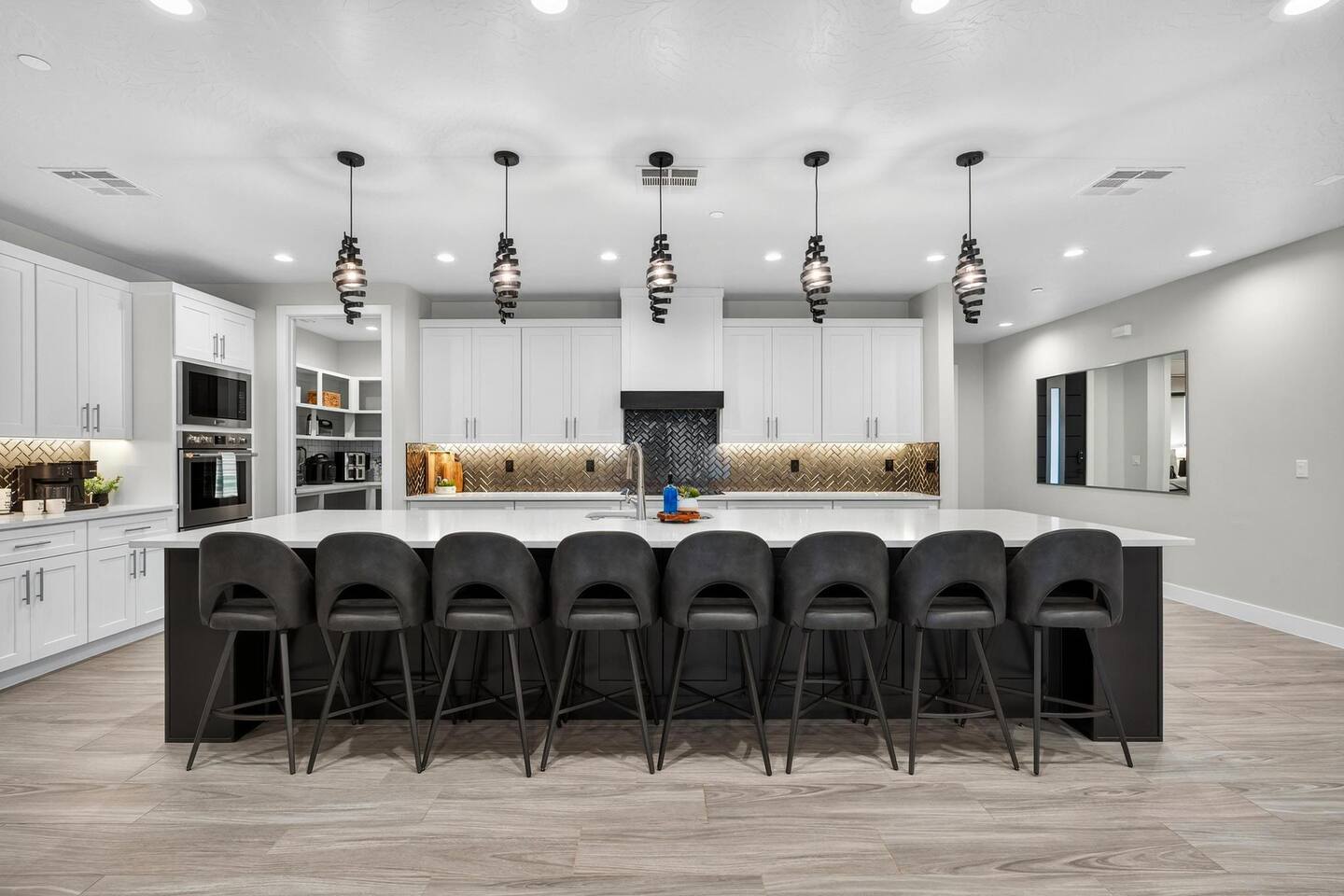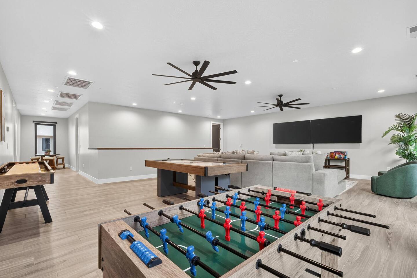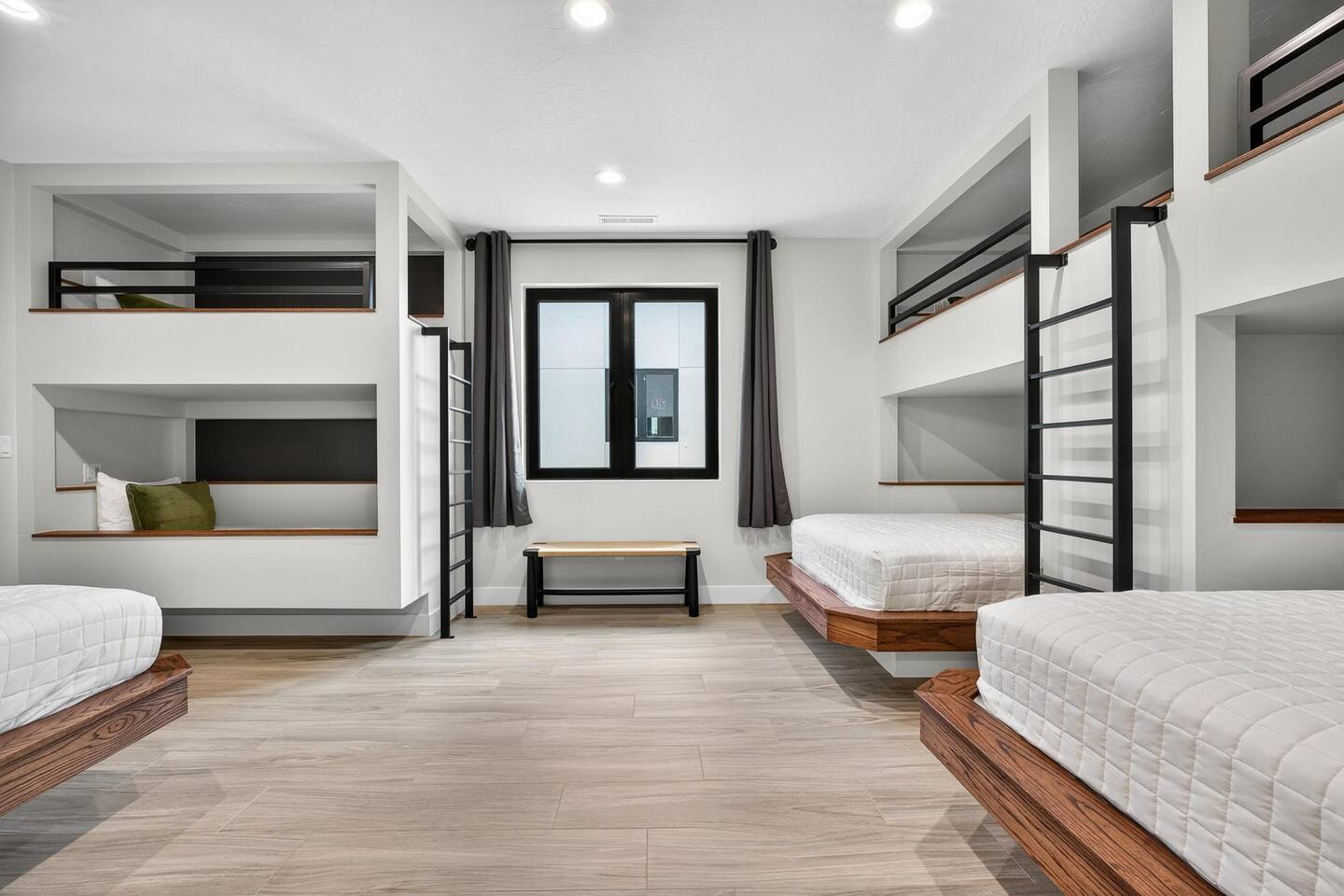 hat You’ll Love 🌊 Private pool & spa combo 🛏️ 7 spacious bedrooms & 9 bathrooms — plenty of privacy for everyone 👩🍳 Chef’s kitchen with high-end appliances and generous prep space 🎮 Game room 📍 Prime location near Zion National Park, Sand Hollow, & Bryce Canyon Perfect for family reunions, multi-family vacations, retreats, or team getaways. Whether you’re exploring Southern Utah or lounging poolside, this home delivers the ultimate resort-style escape. Bedroom Configuration Main Level Bedroom 1 – King Suite A peaceful retreat featuring a king bed, private en suite bathroom, and direct access to the open living area and kitchen. Bedroom 2 – King Suite Elegant suite with a king bed, en suite bathroom. Half Bathroom Conveniently located off the main living area for guests. Laundry Room (Main Level) Full washer & dryer for your convenience. Second Level Bedroom 3 – Family Suite The ultimate family room with 3 queen beds and 5 twin built-in bunks in a stylish, high-end design—ideal for kids or larger families. Includes a private full bathroom. Bedroom 4 – King Suite Spacious suite with king bed, en suite bathroom, and private patio access. Bedroom 5 – King Suite Beautifully designed king suite with private bath and patio. Bedroom 6 – King Suite Modern and inviting, with king bed, full en suite, and ample natural light. Bedroom 7 – King Suite Tranquil retreat featuring king bed, private bath, and plenty of space to unwind. Laundry Room (Second Level) Washer and dryer for easy access during longer stays. Game Room & Entertainment Gather together for fun-filled nights in the fully equipped game room, featuring: ALL IMAGES IN THIS LISTING ARE STOCK PHOTOS AND WILL BE UPDATED ASAP. Layout and home amenities are the same. Games in the game room will vary. Outdoor Amenities Private Pool & Spa – Heated and ready for use year-round Firepit & Outdoor Seating – Perfect for stargazing or late-night conversations BBQ Grill – Enjoy outdoor meals with family and friends Misting System – Keeps you cool and comfortable on warm Utah days Adventure-Ready Location On-site ATV rentals through Club Rec Sand Dunes & Golf: 5 minutes Sand Hollow State Park: 5 minutes Zion National Park: 30–45 minutes Snow Canyon: 45 minutes Bryce Canyon: 3 hours Downtown St. George: 30 minutes Groceries & essentials: 10 minutes (Times vary depending on traffic.) 🌊 Resort Waterpark & Clubhouse Access – Included! Limited access in colder months. Can request surf machine at resort entrance. Your stay includes 23 free daily passes to the resort’s private waterpark — just steps from your door! Waterpark Highlights 🌪️ Action River – Float or race around the current 🛝 Waterslides for all ages – Endless fun for kids and adults alike 🌊 Double Surf Air Machine – Test your balance on the wave ⛳ Golf Simulators – Perfect your swing indoors ($35/hour per group) 🏊 Main Resort Pool – Swim, splash, or soak in the sun 🍹 Adults-Only Pool – A peaceful, kid-free retreat Need extra passes? Additional day passes can be purchased at the Beach House for $35/person/day.