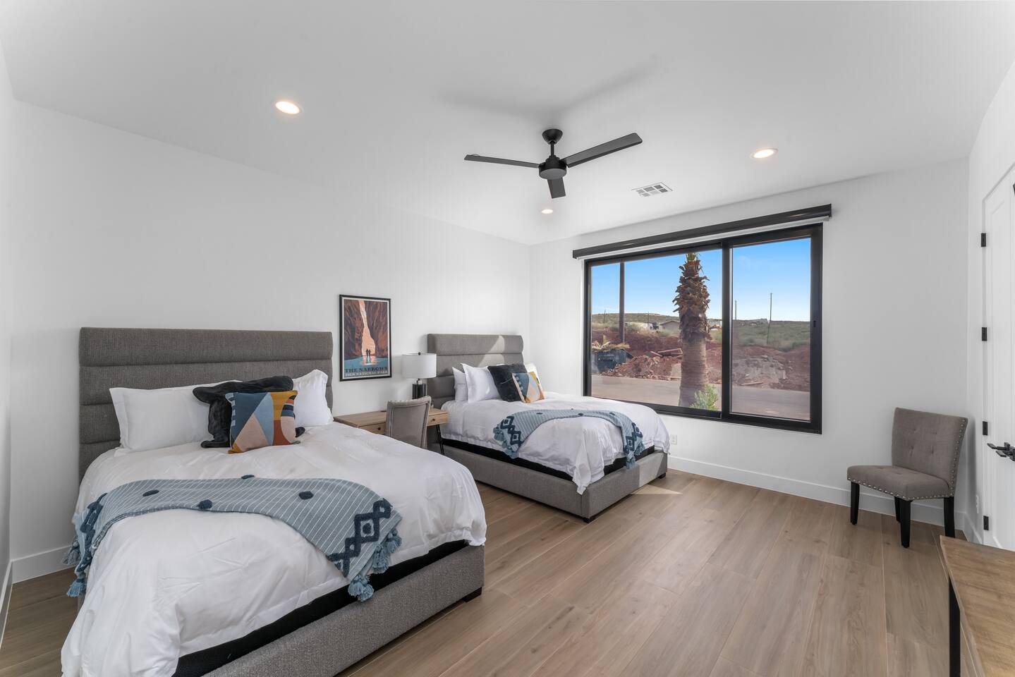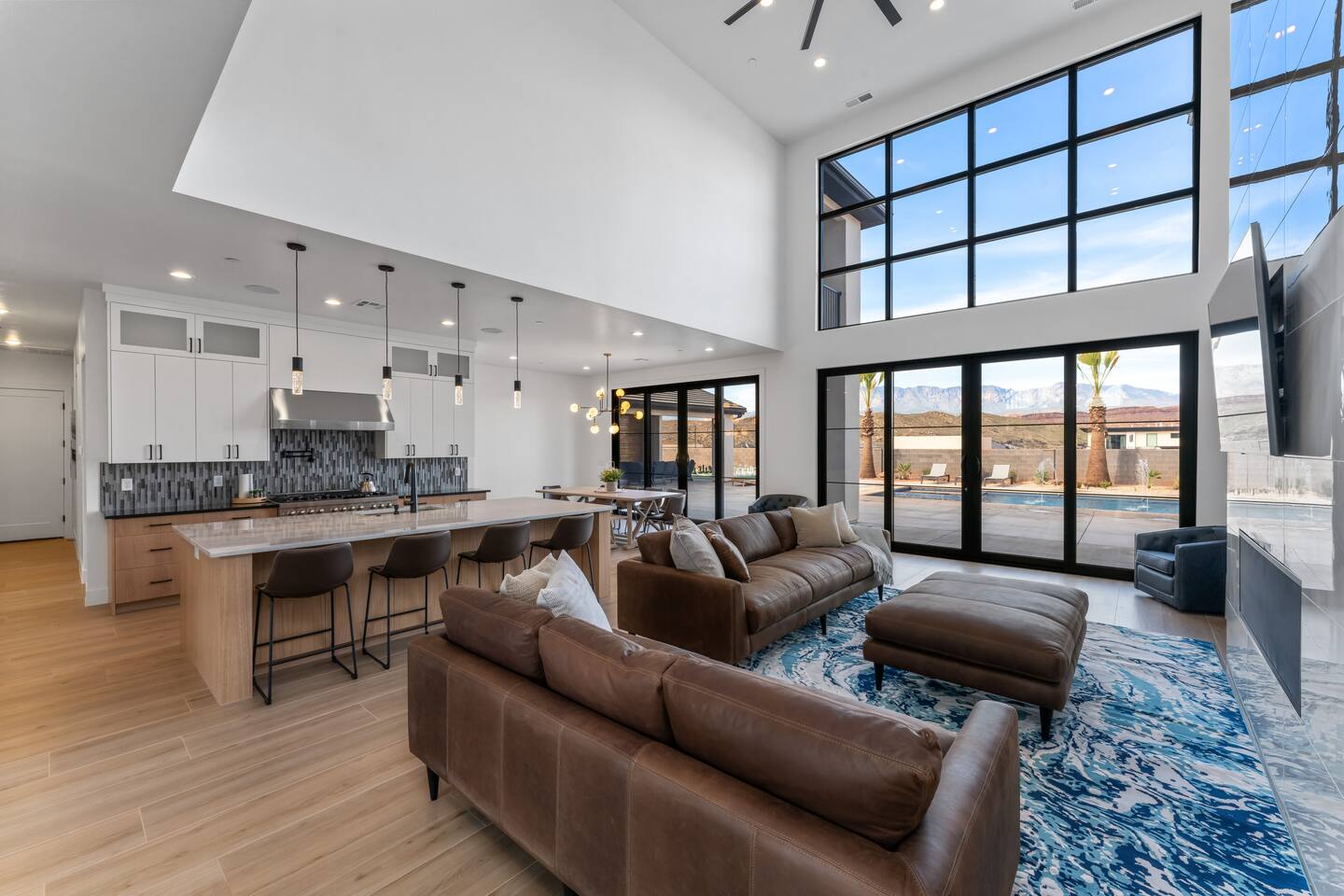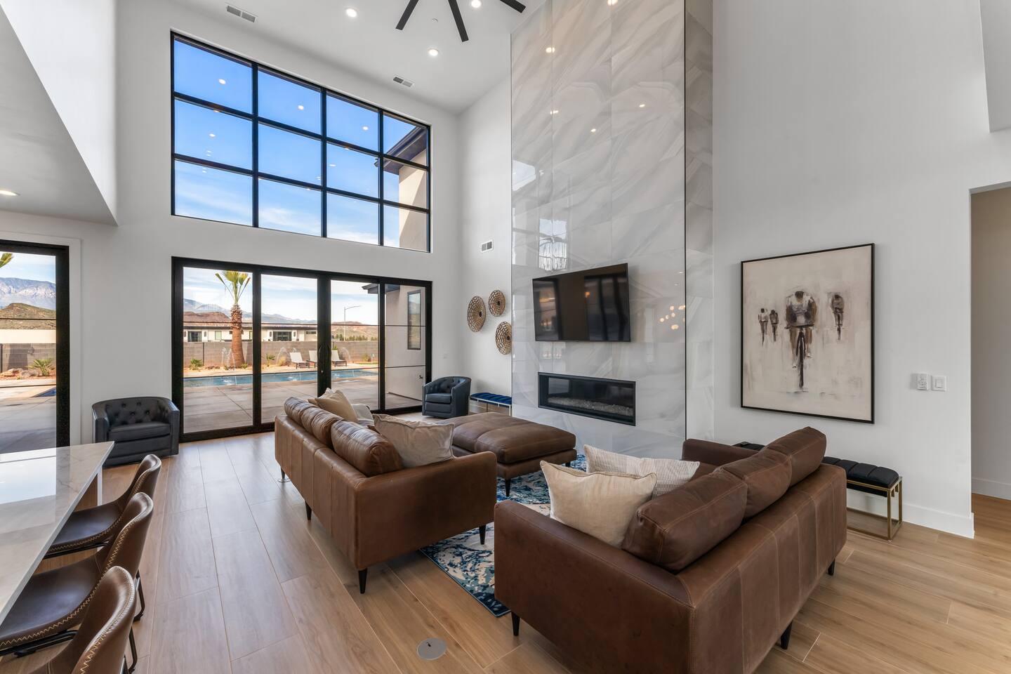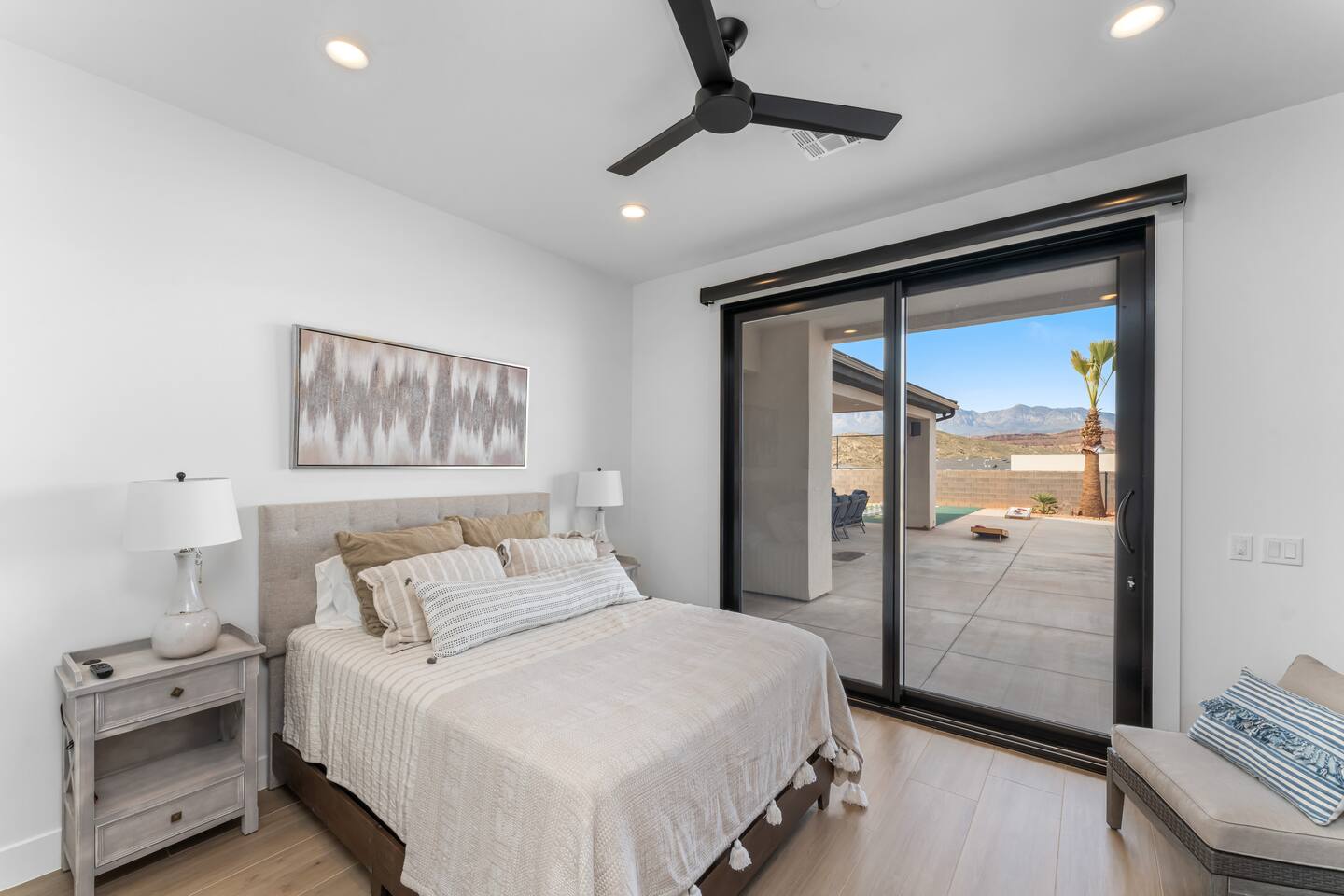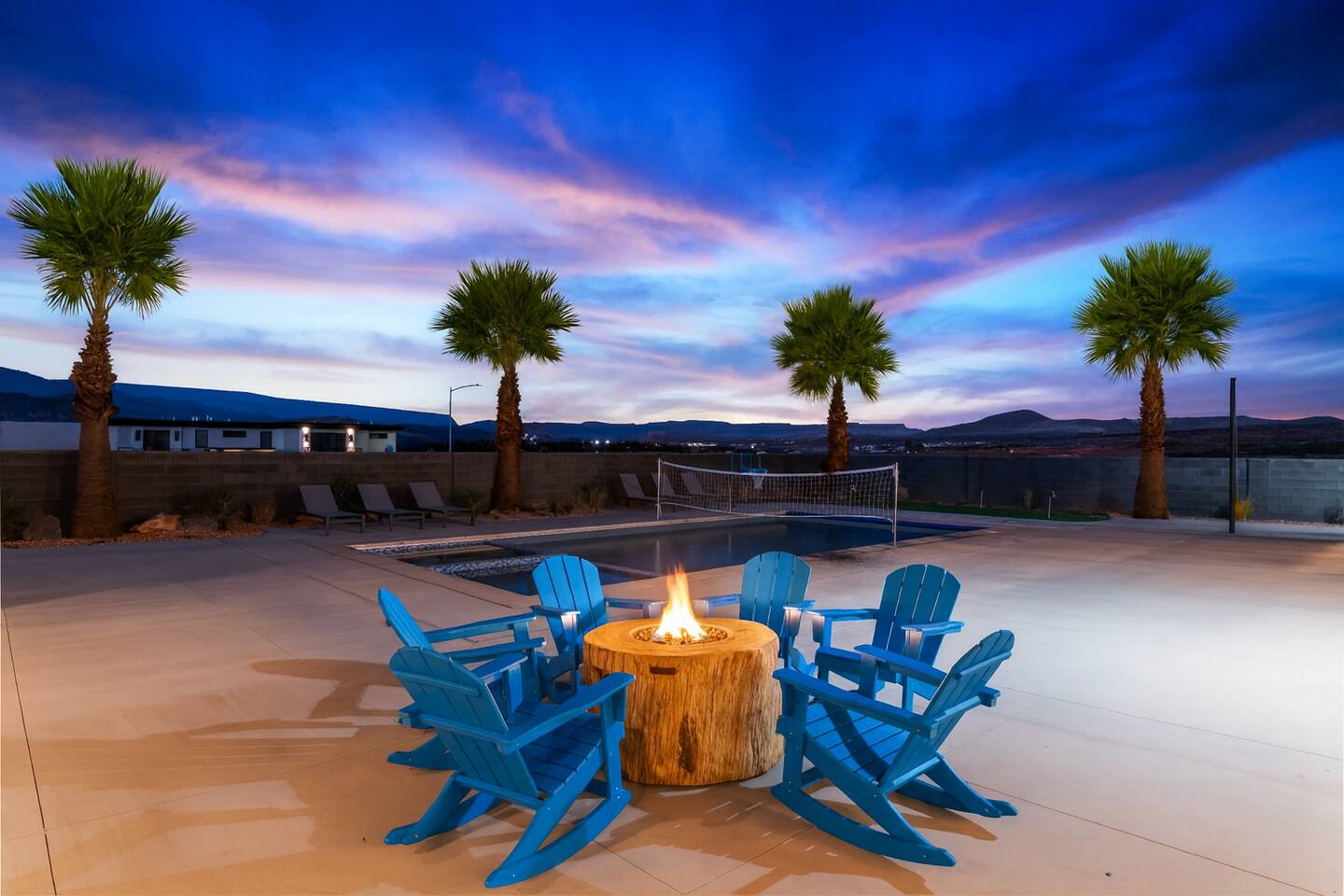 BRAND NEW Spacious Resort Home on Half-Acre with Full Privacy and ALL the Amenities! VERY COMFORTABLY SLEEPS UP TO 24. Designer Home Immersed in Palm Trees & Stunning Desert Vistas, Plush Pool, Outdoor Living & Sport Court. Spread Out, Relax & Indulge! Ride your ATV directly from the property to the Sand Hollow trails in 10 minutes or drive to Zions NP in 45 minutes. Off street parking for 9 vehicles, so park the trailers once and go.
