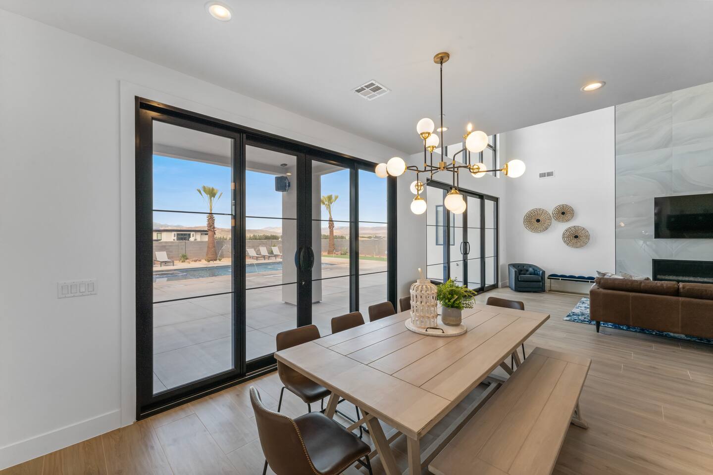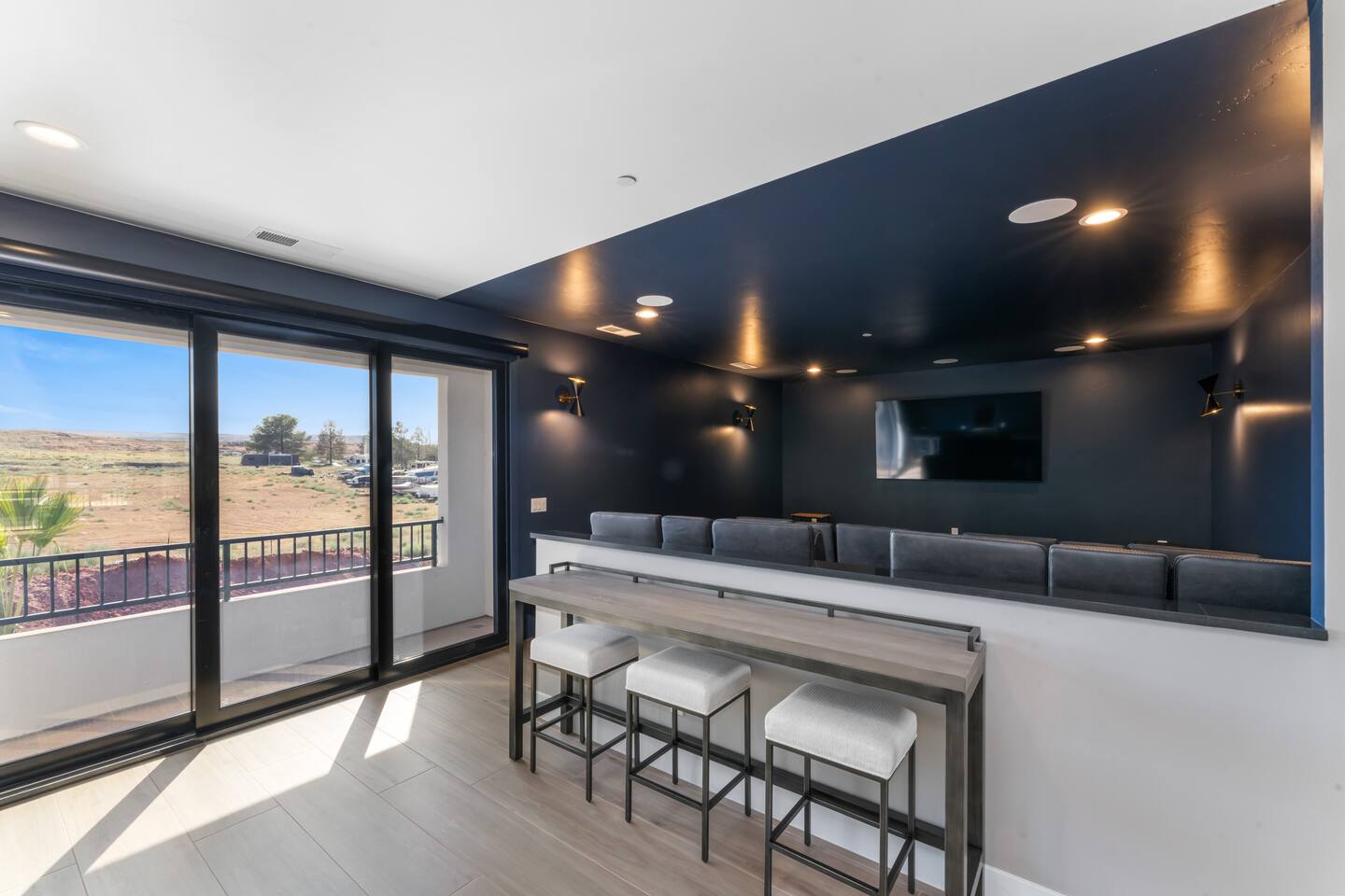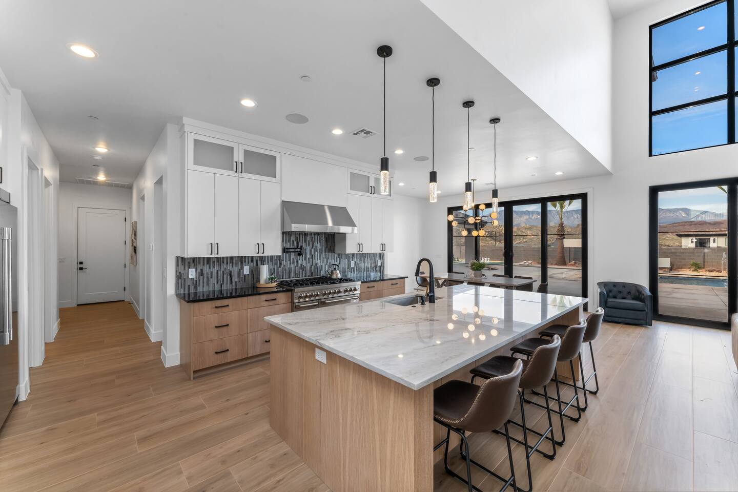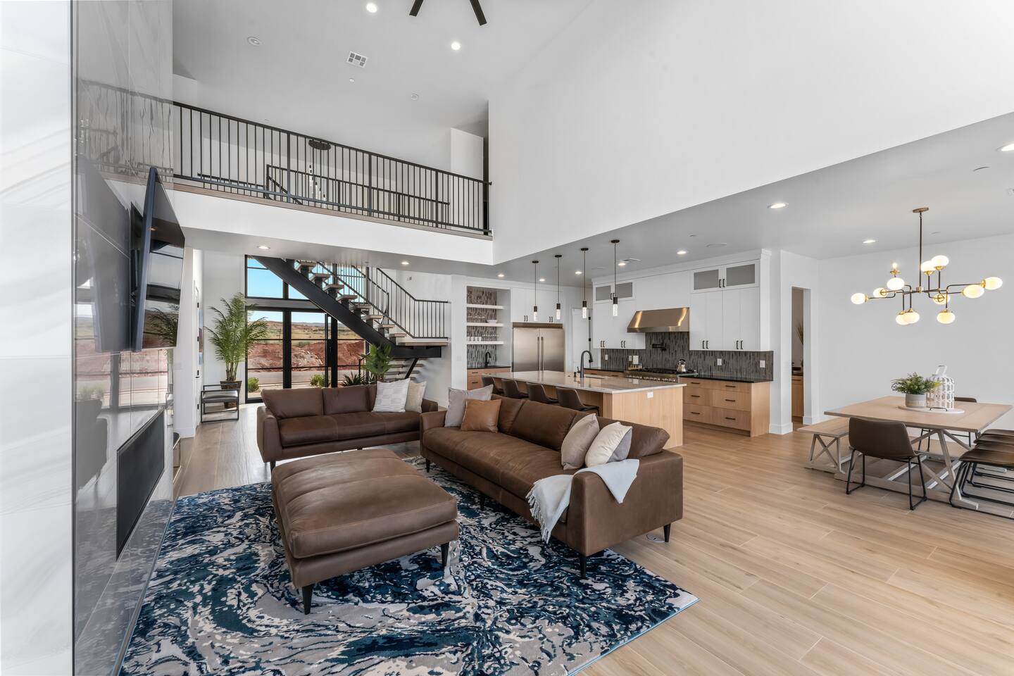 BRAND NEW Spacious Resort Home on Half-Acre with Full Privacy and ALL the Amenities! VERY COMFORTABLY SLEEPS UP TO 24. Designer Home Immersed in Palm Trees & Stunning Desert Vistas, Plush Pool, Outdoor Living & Sport Court. Spread Out, Relax & Indulge! Ride your ATV directly from the property to the Sand Hollow trails in 10 minutes or drive to Zions NP in 45 minutes. Off street parking for 9 vehicles, so park the trailers once and go.